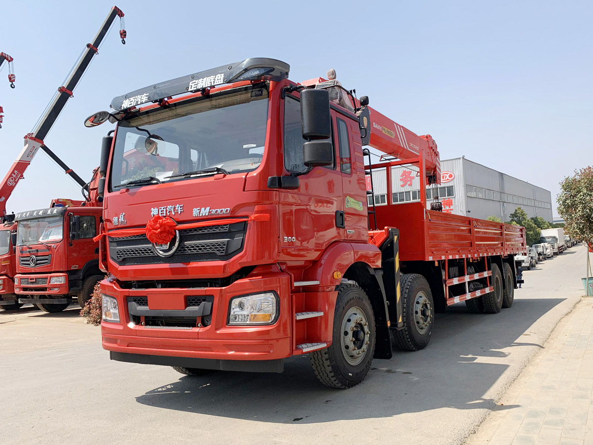 • 陜汽德龍新M3000駕駛室前四后八上裝三一14噸直臂式吊機
